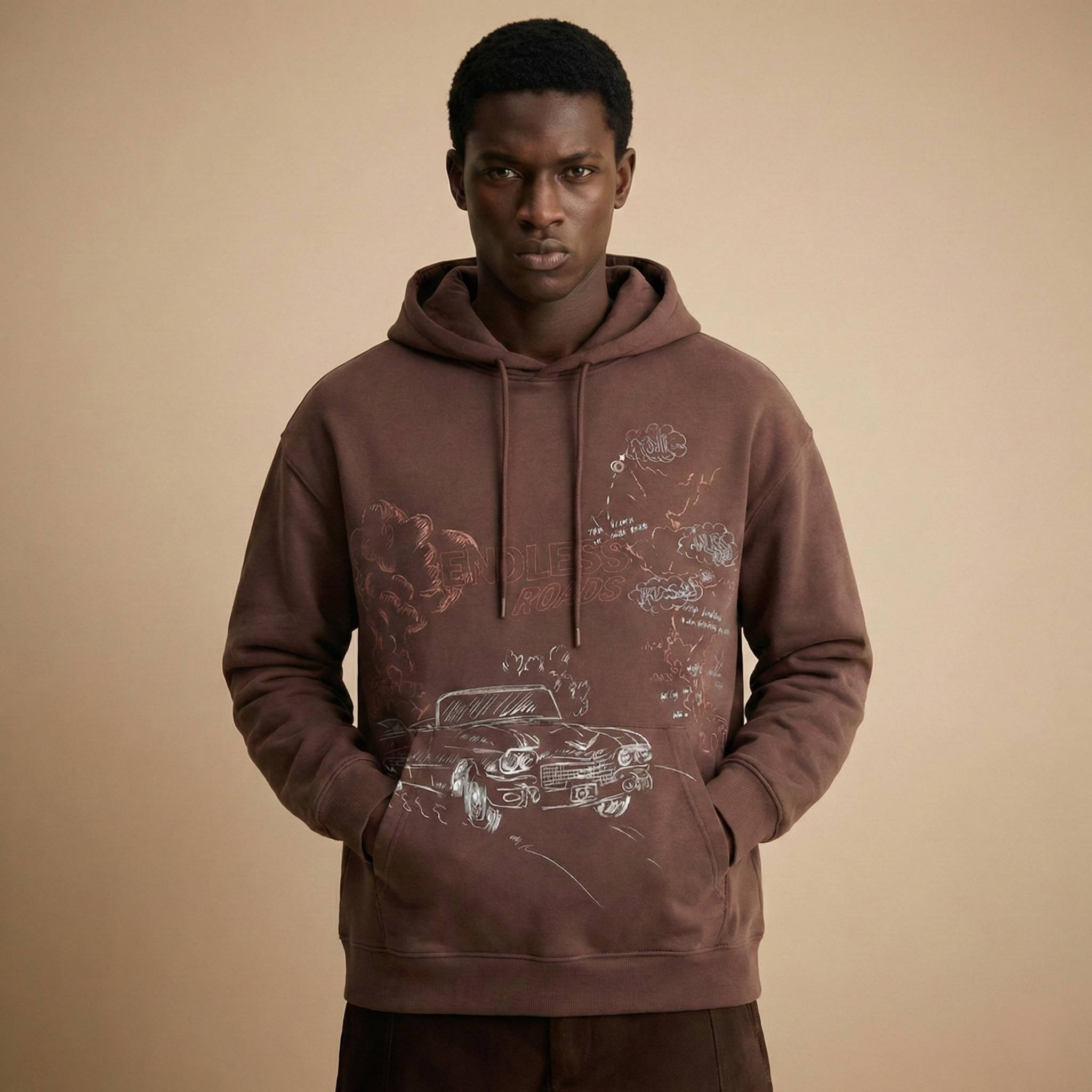 Men’s Slogan Print Hoodie, Kangaroo Pocket